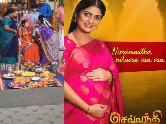 செவ்வந்தி சீரியல் நடிகை திவ்யா ஸ்ரீதர் சீரியலிலும் நிஜ வாழ்விலும் கருவுற்றிருக்கும் நிலையில், ஷுட்டிங்கின்போது அவருக்கு வளைகாப்பு நடத்தப்பட்ட வீடியோவை மகிழ்ச்சியுடன் திவ்யா பதிவிட்டுள்ளார்.