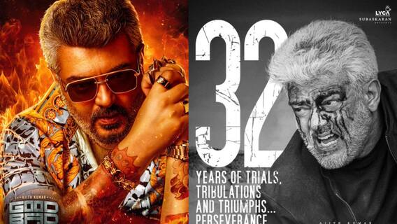 நடிகர் அஜித் குமார் திரையுலகிற்கு வந்து இன்றோடு 32 ஆண்டுகள் கடந்துள்ளன. இதனைக் கொண்டாடும் விதமாக தற்போது அவர் நடித்து வரும் விடாமுயற்சி மற்றும் குட் பேட் அக்லி ஆகிய இரு படங்களின் அப்டேட்கள் வெளியாகியுள்ளன. இன்று ஆகஸ்ட் 3 ஆம் தேதி காலை விடாமுயற்சி படத்தின் சிறப்பு போஸ்டர் வெளியானதைத் தொடர்ந்து தற்போது குட் பேட் அக்லி படத்தின் சிறப்பு போஸ்டர் வெளியாகியுள்ளது.