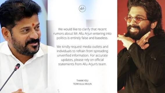இதைத்தொடர்ந்து அல்லு அர்ஜூன் அரசியலுக்கு வர உள்ளதாகவும் இதுதொடர்பாக அரசியல் ஆலோசகர் பிரசாந்த் கிஷோரை டெல்லியில் அவர் சந்தித்ததாகவும் தகவல் பரவியது. இதுகுறித்து அல்லு அர்ஜூன் டீம் அறிக்கை ஒன்றை வெளியிட்டிருந்தது. அதில், ”அல்லு அர்ஜுன் அரசியலுக்கு வருவார் என்ற சமீபத்திய வதந்திகள் முற்றிலும் தவறானவை மற்றும் ஆதாரமற்றவை என்பதை தெளிவுபடுத்த விரும்புகிறோம். சரிபார்க்கப்படாத தகவல்களைப் பரப்புவதைத் தவிர்க்குமாறு ஊடகங்கள் மற்றும் தனிநபர்களை அன்புடன் கேட்டுக்கொள்கிறோம். துல்லியமான அறிவிப்புகளுக்கு அல்லு அர்ஜுன் குழுவின் அதிகாரப்பூர்வ அறிக்கைகளை நம்புங்கள்” எனத் தெரிவிக்கப்பட்டிருந்தது.