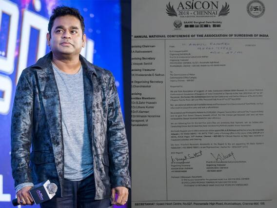 சென்னை அரும்பாக்கத்தில் செயல்பட்டு வரும் அறுவை சிகிச்சை புணர்கள் ஒருங்கிணைப்பு அமைப்பின் சார்பில் அதன் தேசிய மாநாட்டின் செயலாளர் மருத்துவர் விநாயக் செந்தில் அளித்துள்ள புகார் வைரலாகி வருகிறது. அதில், கடந்த 2018ம் ஆண்டு டிசம்பர் 26 மற்றும் 30ம் தேதிகள் அறுவை சிகிச்சை நிபுணர்களுக்கான மாநாடு நடத்த திட்டமிட்டிருந்ததாகவும், அதில் ஏ.ஆர். ரஹ்மான் இசை நிகழ்ச்சிக்கு ஏற்பாடு செய்து அவருக்கு முன்பணமாக ரூ. 29.50 லட்சம் கொடுத்ததாகவும் கூறப்பட்டுள்ளது.