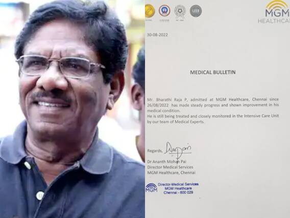 இந்நிலையில் இயக்குநர் பாரதிராஜாவின் உடல்நிலை தொடர்பாக தனியார் மருத்துவமனை அறிக்கை ஒன்றை இன்று வெளியிட்டுள்ளது. அதன்படி, “இயக்குநர் பாரதிராஜா கடந்த 26ஆம் தேதி மருத்துவமனையில் அனுமதிக்கப்பட்டார். அவருடைய உடல்நிலையில் தொடர்ந்து முன்னேற்றும் ஏற்பட்டு வருகிறது. அவருடைய உடல்நிலை தொடர்பாக மருத்துவர்கள் தீவிரமாக கண்காணித்து வருகின்றனர். அவர் தீவிர சிகிச்சை பிரிவில் வைக்கப்பட்டு மருத்துவர்களால் கண்காணிக்க பட்டு வருகிறார்” எனத் தெரிவித்துள்ளது.