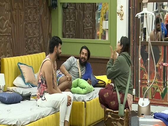 ப்ரியங்காவும், நிரூப்பும் ஜாலியாக பேசிக்கொண்டிருந்தார்கள். “சனிக்கிழமை கண்ணுக்கு லட்சணமா ஒரு பொண்ணு எண்ட்ரி கொடுக்கணும்”பா என பிக்பாஸுக்கே கோரிக்கை வைத்தார் நிரூப். அடுத்து ராஜுமோகன் தன் கதையை சொல்லும் டாஸ்க் வந்தது. “சின்ன வயசில் இருந்ததில் இருந்தே சினிமா எனக்குப் பிடிக்கும்” எனப்பேசிய ராஜு, எம்.ஆர் ராதா குரலிலெல்லாம் பேசி அசத்தினார்.