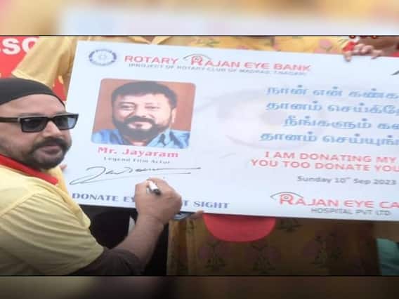 இப்படியான நிலையில் நேற்று, சென்னை பெசன்ட் நகர் எலியட்ஸ் கடற்கரையில் ரோட்டரி கிளப் ஆப் மெட்ராஸ் மற்றும் ராஜன் கண் மருத்துவமனை சார்பில் நடைபெற்ற கண் தானம் குறித்த விழிப்புணர்வு பேரணி நடைபெற்றது. இதில் சுமார் 500க்கும் மேற்பட்ட கல்லூரி மாணவ, மாணவிகள் பங்கேற்றனர். இந்நிகழ்ச்சியில் சிறப்பு விருந்தினராக நடிகர் ஜெயராம் பங்கேற்றார். தொடர்ந்து பேரணியில் கலந்து கொண்ட அவர், இறுதியில் கண் தானம் குறித்த விழிப்புணர்வை ஏற்படுத்தும் வகையில், தானம் செய்ய ஒப்புதல் அளிக்கும் பத்திரத்தில் கையெழுத்திட்டார். அவரைத் தொடர்ந்து பல கண் தானம் செய்ய ஒப்புதல் அளிக்கும் பத்திரத்தில் கையெழுத்திட்டனர்.