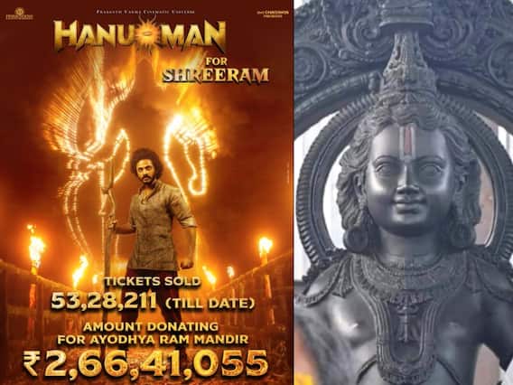 இதுவரை அனுமன் படத்திற்கு 55, 28,211 டிக்கெட்கள் விற்பனை ஆகியுள்ளன. ஒரு டிக்கெட்டிற்கு 5 ரூபாய் வீதம் 55, 28,211 டிக்கெட்களுக்கான பணத்தை ராமர் கோயிலுக்கு நன்கொடையாக வழங்கியுள்ளது அனுமன் படக்குழு. இந்த தகவலை எக்ஸ் தளத்திலும் வெளியிட்டுள்ளது.