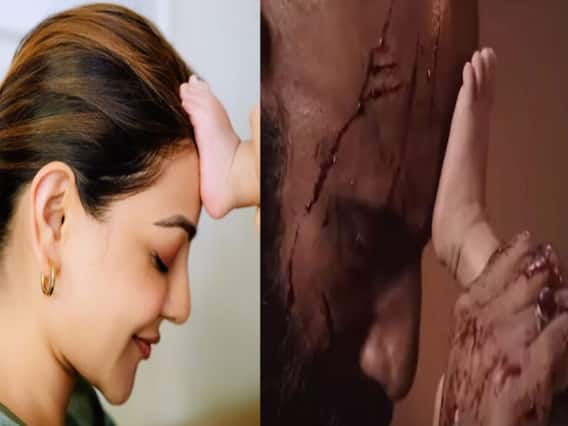 ராஜமௌளி இயக்கத்தில் பிரம்மாண்டமாக வெளியான பாகுபலி திரைப்படத்தில் , பாகுபலி பிறந்ததும் கட்டப்பா , அந்த குழந்தையின் காலை எடுத்து தனது தலையில் வைத்துக்கொள்வார். அந்த காட்சி பாகுபலி திரைப்படத்தின் ஐகானாகவே பார்க்கப்படுகிறது. அந்த காட்சியை அப்படியே ரீ-கிரியேட் செய்து , தனது மகனின் காலை எடுத்து தனது தலையில் வைத்து போஸ் கொடுத்துள்ளார் காஜல் அகர்வால் . மேலும் இயக்குநர் ராஜமௌளியை டேக் செய்து “ சார் இது எனது மகன் நீல் . உங்களுக்கு எங்களின் டெடிக்கேஷன். இதை செய்யாமல் எப்படி இருக்க முடியும் “ என குறிப்பிட்டுள்ளார். அந்த புகைப்படம் தற்போது வைரலாகி வருகிறது.