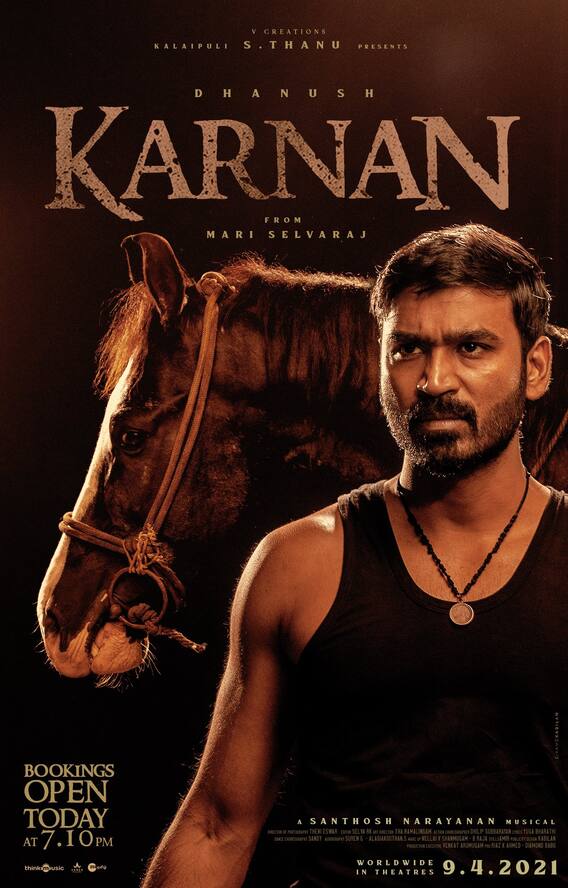 <blockquote class="twitter-tweet"><p lang="en" dir="ltr">🐎BOOKINGS OPEN TODAY AT 7.10 PM 🐎<a >#karnan</a> <a >@dhanushkraja</a> <a >@theVcreations</a> <a >@Music_Santhosh</a> <a >pic.twitter.com/Zeu8aWh1xJ</a></p>— Mari Selvaraj (@mari_selvaraj) <a >April 6, 2021</a></blockquote> <script async src="https://platform.twitter.com/widgets.js" charset="utf-8"></script>