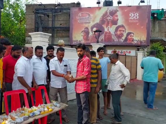 பொன்னியின் செல்வன் 2 படம் பார்க்க வந்தவர்களுக்கு காலை உணவு வழங்கி கார்த்தி ரசிகர்கள் அசத்தியுள்ளனர்.