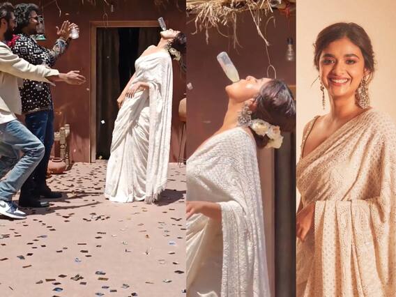 அந்த வகையில் முன்னதாக தசரா பட ப்ரோமோஷன் பணிகளின் போது நடிகை கீர்த்தி சுரேஷ் கைகளைப் பயன்படுத்தாமல் பாட்டிலில் இருந்த குளிர்பானத்தைக் குடித்த வீடியோ இணையத்தில் வைரலாகியுள்ளது.
