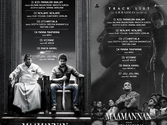 மாமன்னன் படத்தில் இசைவெளியீட்டு விழா இன்று சென்னையில் உள்ள நேரு விளையாட்டு மைதானத்தில் நடைபெற உள்ளது. உலக நாயகன் கமல்ஹாசன் இந்த நிகழ்ச்சியில் சிறப்பு விருந்தினராக கலந்துகொள்ள இருக்கிறார் என தகவல் தெரிவித்துள்ளது படக்குழு.ஏ.ஆர். ரஹ்மான் இசையமைத்திருக்கும் இந்த படத்தின் பாடல் வரிசை தற்போது வெளியிடப்பட்டுள்ளது. ஏற்கனவே இரண்டுப் பாடல்களை நாம் கேட்டுவிட்ட நிலையில் இந்தப் படத்தில் இடம்பெற்றிருக்கும் மற்றப் பாடல்களையும் அவற்றை பாடியவர்கள் யார் என்பதையும் பார்க்கலாம்.