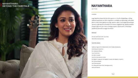 நயன்தாரா - Beyond The Fairy Tale என்ற தலைப்பில் அவரது திருமண ஆவணப்படம் வெளியாகியுள்ளது. இதில், நயன்தாராவின் காதல், தனிப்பட்ட வாழக்கை அனுபவங்கள், திருமண நிகழ்ச்சி விக்னேஷ் சிவனுடனான அவரது வாழ்க்கையைப் பற்றியதாக அமைந்துள்ளது. கடந்த 2022ம் ஆண்டு ஜுன் மாதம், நயன்தாரா மற்றும் விக்னேஷ் சிவனின் திருமணம் நடைபெற்றது. காதல் திருமணம் செய்து கொண்டனர். கோலிவுட்டின் காதல் ஜோடியாக ரசிகர்கள் இவர்களை கொண்டாடி வருகின்றனர். நானும் ரெளடிதான் திரைப்பட ஷீட்டிங்கின் போது நயன்தாரா - விக்னேஷ் சிவன் காதலிக்க தொடங்கி, திருமணம் நடந்து உயிர் ருத்ரோநில் N சிவன், உலக் தெய்விக் N சிவன் என்ற இரண்டு பிள்ளைகள் இருக்கின்றனர்.