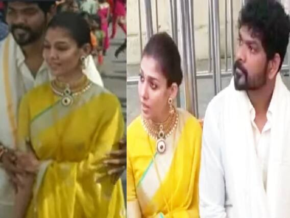 நயன்தாரா மஞ்சள் நிற புடவையிலும், விக்னேஷ்சிவன் பட்டு வேஷ்டி, பட்டுசட்டையிலும் கோவிலுக்கு வந்தனர். கிறிஸ்தவ மதத்தைச் சார்ந்த நயன்தாரா கடந்த சில ஆண்டுகளுக்கு முன்பாகவே இந்து மதத்தை தழுவியதாக கூறப்படுகிறது. மாமல்லபுரத்தில் நேற்று நடைபெற்ற விக்னேஷ்சிவன் – நயன்தாரா திருமணம்கூட இந்து மத முறைப்படியே நடைபெற்றுள்ளது. நயன்தாரா மஞ்சள்கயிறு சூடிய மாங்கல்யத்தை பார்க்கும் புகைப்படம் நேற்று முழுவதும் சமூக வலைதளங்களில் வைரலாகியது.