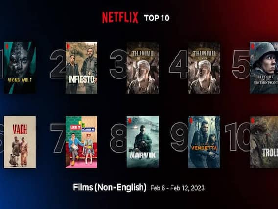அந்த வகையில் பிப்ரவரி 6 முதல் 12 வரையிலான வாரத்திற்கான பட வரிசையில் துணிவு படத்தின் தமிழ் பதிப்பு 3வது இடமும், இந்தி பதிப்பு 4வது இடமும் பெற்றுள்ளது. நெட்ஃபிளிக்ஸ் வரலாற்றில் முதல்முறையாக இந்தியப் படம் ஒன்று இரண்டு இடங்களை பிடித்துள்ளது குறிப்பிட்டத்தக்கது.