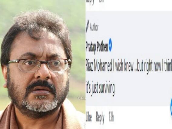 வாழ்க்கையின் பொருள் என்ன? என ஒருவர் கேட்ட கேள்விக்கு, “எனக்கு வாழ்க்கையின் பொருள் தெரிந்தால், நன்றாகத்தான் இருந்திருக்கும். ஆனால் இப்போதைக்கு, பிழைத்துக்கிடப்பதே வாழ்வின் பொருள் என நினைக்கிறேன்” என பிரதாப் போத்தன் பதிவிட்டுள்ளார்.