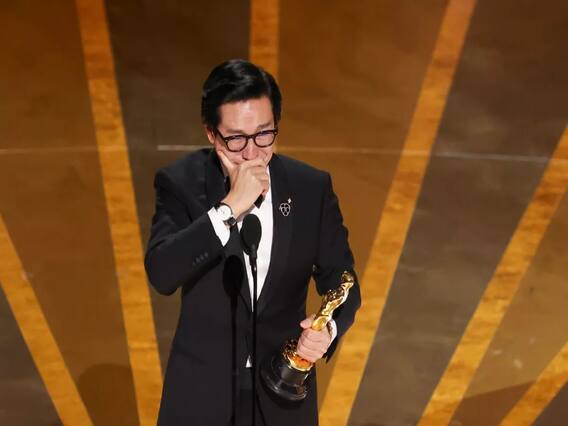 எவ்ரிதிங் எவ்ரிவேர் ஆல் அட் ஒன்ஸ் திரைப்படத்திற்கு தற்போது சிறந்த துணை நடிகராக ஆஸ்கர் விருது வென்ற கி க்யூ க்வோன் மேடையில் உணர்ச்சி வசப்பட்டு அழ தொடங்கினார். அப்போது பேசிய அவர், “எனது அம்மாவிற்கு தற்போது 84 வயது ஆகிறது. நான் விருது வாங்குவதை அவர் பார்த்து கொண்டு இருப்பார். அம்மா, நான் ஆஸ்கர் விருதை வென்றேன்” என அழ தொடங்கினார்.