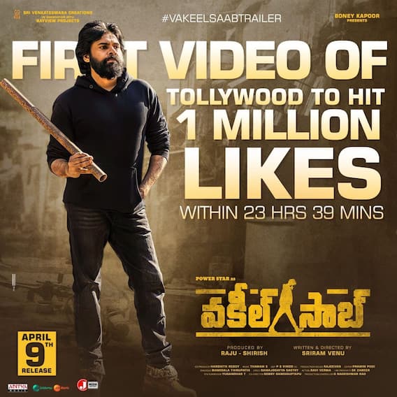 பவன் கல்யாண் நடிப்பில் வெளியாக இருக்கும் "வக்கீல் சாப் " திரைப்படம் யூ ட்யூப்பில் ரெக்கார்ட் பிரேக் செய்துள்ளது.