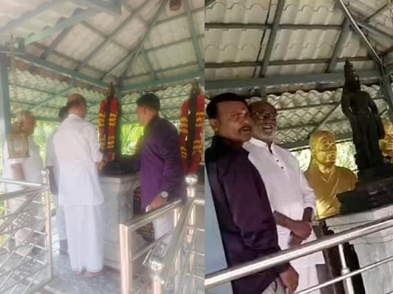 கர்நாடகா எல்லையின் நாச்சிக்குப்பத்தில் உள்ள தனது தாய், தந்தையின் நினைவிடத்தில் நடிகர் ரஜினிகாந்த் தனது சகோதரருடன் இணைந்து அஞ்சலி செலுத்தினார்.