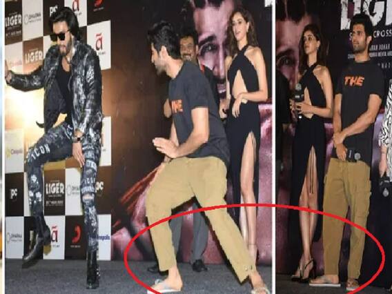 பட டிரெய்லர் வெளியீட்டு விழாவில் செருப்பு அணிந்த நடிகர் விஜய் தேவரகொண்டாவை, நடிகர் ரன்வீர் சிங் கிண்டல் செய்த வீடியோ இணையத்தில் வைரலாகியுள்ளது.