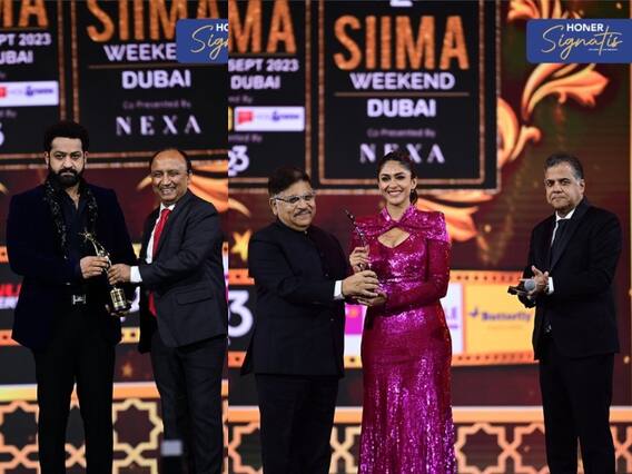 சைமா (SIIMA Awards 2023) எனப்படும் தென்னிந்திய சர்வதேச திரைப்படம் விருது விழா நிகழ்ச்சி வருடந்தோறும் நடைபெற்று வருகிறது. தென்னிந்திய திரைக் கலைஞர்களை கெளரவிக்கும் வகையில் நடைபெறும் இந்த நிகழ்ச்சி நடப்பாண்டுடன் 11 ஆண்டுகளை கடந்துள்ளது. 11வது சைமா விருது விழா நேற்று செப்டம்பர் 15 ஆம் தேதி துபாயில் தொடங்கி செப்டம்பர் 16 ஆம் தேதியான இன்றும் நடைபெறுகிறது. பல்வேறு தென்னிந்திய பிரபலங்கள் கலந்து கொண்ட இந்த நிகழ்ச்சியின் முதல் நாளில் வளர்ந்து வரும் இளம் நடிகர்கள், தயாரிப்பாளர்கள் ஆகியவர்கள் கெளரவிக்கப்பட்டார்கள். இதனைத் தொடர்ந்து கன்னடம் மற்றும் தெலுங்கு படங்களுக்கான விருதுகளும் வழங்கப்பட்டன.