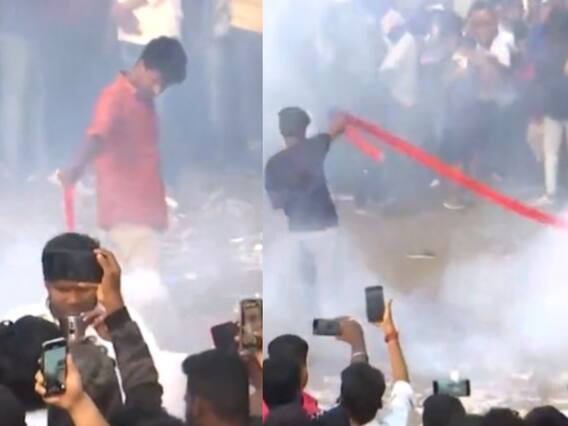 இந்தநிலையில், சென்னை திரையரங்கு ஒன்றில் விஜய் மற்றும் அஜித் ரசிகர்கள் சிலர் கையில் சரவெடியை வைத்துகொண்டு கூட்டத்திற்கு நடுவில் கிறுக்குதனமான செயல்களை செய்துள்ளனர். தற்போது இந்த வீடியோ இணையத்தில் வேகமாக பரவி வைரலாகி வருகிறது.
