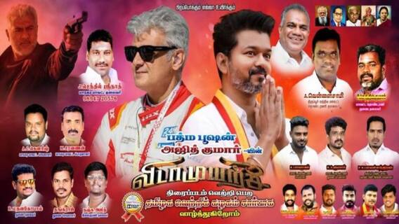 இந்த நிலையில், அஜித்தின் விடாமுயற்சி படத்திற்கு இணையத்திலும், திரையரங்கிலும் விஜய் ரசிகர்கள் வாழ்த்து தெரிவித்து வருகின்றனர். நடிகர் விஜய்யின் தமிழக வெற்றிக் கழகத்தின் சார்பில் பத்மபூஷண் அஜித் நடித்த விடாமுயற்சி படம் வெற்றி பெற வாழ்த்துகள் என்றே வாழ்த்து போஸ்டர்கள் வெளியாகி வருகிறது.