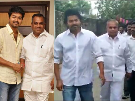 ரசிகர்களின் அன்பால் திக்குமுக்காடிய விஜய் ஒருவழியாக அலுவலகத்துக்குள் சென்றார். ஆனால், விஜய் மக்கள் இயக்க நிர்வாகியான புஸ்ஸி ஆனந்த் வரும்போது, நிர்வாகிகள் பலர் அவர் காலில் விழுந்து வணங்கியிருக்கின்றனர்.
