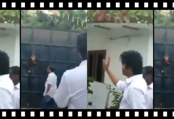 கேட் ஓட்டையில் இருந்து கை காட்டிய ரசிகருக்கு விஜயும் மரியாதையாக கை அசைத்து காட்டியுள்ளார். இணையத்தில் லீக்கான இந்த வீடியோ வைரலாக பரவி வருகிறது
