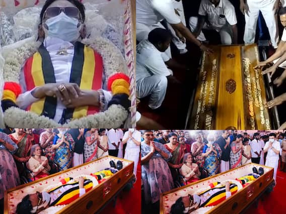 இன்று பொதுமக்களின் அஞ்சலி முடிந்த நிலையில் சென்னை, கோயம்பேட்டில் உள்ள தேமுதிக அலுவலகத்தில் விஜயகாந்த் உடலுக்கு அரசு மரியாதை செலுத்தப்பட்டது. முதலமைச்சர் மு.க.ஸ்டாலின் முன்னிலையில் 72 குண்டுகள் முழங்க விஜயகாந்த் உடலுக்கு அரசு மரியாதை செலுத்தப்பட்டது. அதன்பின்னர், குடும்பத்தினரின் இறுதி சடங்கு நடத்தப்பட்ட விஜயகாந்த் உடல் கண்ணீர் கடலில் நல்லடக்கம் செய்யப்பட்டது.