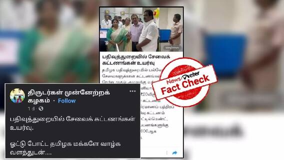 பதிவுத்துறையில் சேவைக் கட்டணங்கள் உயர்வு" என்ற தலைப்பில் Way2news வெளியிட்டிருந்த செய்தி ஒன்று தற்போது வைரலாகி வருகிறது. அதில், தமிழக பதிவுத்துறையில் பல்வேறு சேவைகளுக்கான கட்டணங்கள் உயர்வு நேற்று முதல் அமலுக்கு வந்துள்ளது.