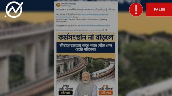 இந்தியாவின் மெட்ரோ ரயில் சேவையை மேம்படுத்துவதில் பிரதமர் நரேந்திர மோடியின் பங்களிப்பு என குறிப்பிட்டு, மேற்கு வங்க பாஜக ஒரு போஸ்டரை ட்வீட் செய்துள்ளது. அதில் மோடியின் புகைப்படத்திற்கு பின்புலத்தில் உயரடுக்கு மெட்ரோ ரயில் சேவை தொடர்பான ஒரு புகைப்படம் இடம்பெற்றுள்ளது. இந்த பதிவை பலரும் சமூக வலைதளங்களில் பகிர்ந்தனர்.