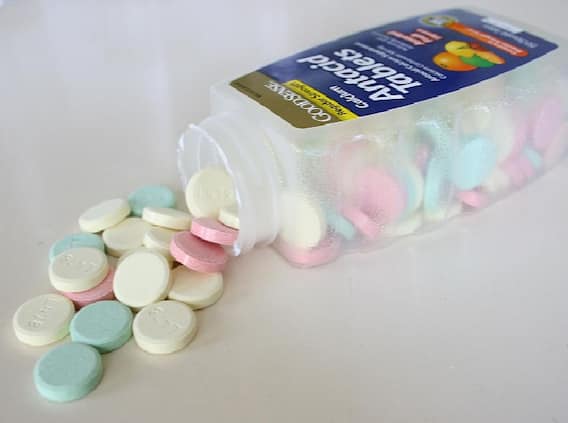 ஒருபுறம் காபி, டீயை டம்ளர் டம்ளராக விழுங்கிக் கொண்டு இன்னொரு புறம் அன்டாசிடை சாப்பிடுவது மிகப்பெரிய ஆபத்தை விளைவிக்கும். நம் உணவுக்குழாய்க்கும் வயிற்றுக்கும் இடையே ஸ்பின்ச்டர் என்ற வால்வு உள்ளது. இது திரவங்கள் செல்ல ஒரு பாதை ஏற்படுத்துகிறது. கஃபைன் உள்ளே செல்லும்போது அது அந்த வால்வை விரிவடையச் செய்யும். இதனால் அசிடிட்டி உண்டாகும். நாம் காபியுடன் அசிடிட்டி மாத்திரை எடுத்தால் பெப்டிக் அலர், கேஸ்ட்ரோ ஈஸோஃபேகல் ரிஃப்ளக்ஸ் நோயை உண்டாக்கும். குளிர் பானங்களிலும் கஃபைன் இருப்பதால் எனவே அத்துடனும் அசிடிட்டி மாத்திரைகளை சாப்பிடக் கூடாது.