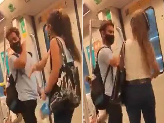 டெல்லி மெட்ரோ ரயிலில் ஒரு இளைஞரும் இளம் பெண்ணும் ஒருவரை ஒருவர் தாக்கிக் கொண்ட சம்பவம் சமூக வலைதளங்களில் வைரலாகி உள்ளது.