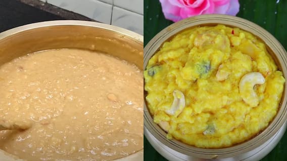 இதற்கு அரிசியை 10 நிமிடங்கள் ஊறை வைக்கலாம். பிறகு, அடுப்பில் மிதனமான தீயில் வாணலியில் நெய் சேர்த்து அதில் பாசிப்பருப்பு நன்கு பொன்னிறமாக வதக்கி தனியே வைக்கவும். அடுத்து பச்சரியை பொன்னிறம் வரும் வரை வறுத்துக் கொள்ளவும். அதோடு, அதனுடன் பால் சேர்க்கவும். மிதமான தீயில் அரிசி, பருப்பு இரண்டும் பாலில் நன்றாக வேக வைக்கவும். அரிசி, பருப்பு மசிந்து வரும் வரை வேக வைக்கவும்.