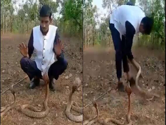 கர்நாடகா மாநிலத்தைச் சேர்ந்த சிர்சி என்ற 20 வயது இளைஞர் பாம்புகள் மீது அதிக நாட்டம் கொண்டவர். இவர் தன்னுடைய யூடியூப் சேனலிலும் அடிக்கடி பாம்புகள் தொடர்பான வீடியோக்களை பதிவிட்டு வருகிறார். இந்நிலையில் கடந்த சில நாட்களுக்கு முன்பாக இவர் வழக்கம் போல் பாம்புகளுடன் விளையாட முயற்சி செய்துள்ளார். அப்போது அவர் 3 பாம்புகளுடன் விளையாடியுள்ளார்.