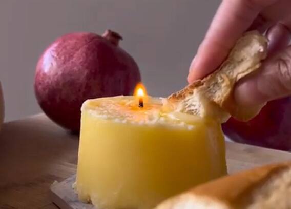 இது வெறுமனே உறைந்த வெண்ணெயை குமிழியாக்கித் தயாரிக்கப்படுகிறது, அதன் மேல் ஒரு திரி பொருத்தப்பட்டுள்ளது, இது உண்மையான கேண்டிலை போலவே காட்சியளிக்கும். நீங்கள் இந்த மெழுகுவர்த்தியை ஏற்றி உங்கள் மேஜை அல்லது கேக்குகள் போன்ற உணவுகளை அலங்கரிக்கலாம், இறுதியில் அதை சாப்பிடலாம். சாதாரணமாக கேக்களில் மெழுகு வழிகிறதே என்கிற கவலை இதில் இல்லை.