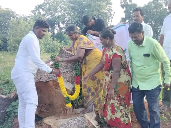 பசுமைத் தாயகம் சார்பில் வெட்டப்பட்ட மரங்களுக்கு அஞ்சலி செலுத்திய புகைப்படங்கள் சமூக வலைதளத்தில், வைரலாக பரவி வருகிறது. வெட்டப்பட்ட மரங்களுக்கு ஈடாக, நிறைய மரங்கள் நட வேண்டும் என சமூக வலைதளத்தில் கருத்து பதிவு செய்து வருகிறார். மரங்களுக்கு அஞ்சலி செலுத்துவது , மனிதத்தன்மையின் உச்சம் எனவும் பதிவு செய்து வருகின்றனர்.