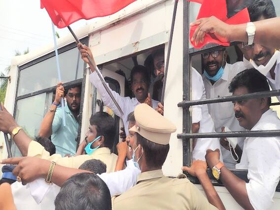 அப்பொழுது மத்திய அரசின் கொண்டு வந்த வேளாண் சட்டங்களை கண்டித்தும் பெட்ரோல் டீசல் விலையேற்றத்திற்கு காரணமான மத்திய அரசை கண்டித்தும் முழக்கங்கள் எழுப்பட்டன பின் சாலை மறியலில் ஈடுபட்ட நூற்றுக்கும் மேற்பட்டோரை காவல் துறை கைது செய்தது அப்பொழுது கடலூர் சட்டமன்ற உறுப்பினர் கோ.அய்யப்பன் கைது செய்ப்பட்டு பின் விடுவிக்கப்பட்டார். அண்ணா பாலத்தில் நடந்த இந்த சாலை மறியல் போராட்டத்தினால் அந்த பகுதியில் சிறிது நேரம் போக்குவரத்து நெரிசல் ஏற்பட்டது.
