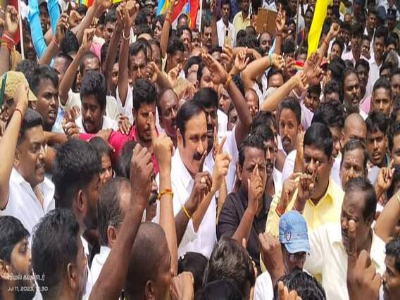 இந்த ஆர்ப்பாட்டத்தில், பாமக தலைவர் அன்புமணி ராமதாஸ் எம்.பி கலந்துகொண்டு கண்டன உரையாற்றினார். இந்த கொலை சம்பவங்கள் நடைபெற முக்கிய காரணம் மது மற்றும் கஞ்சா உள்ளிட்ட போதை பொருட்கள் தான். மதுவிலக்குத்துறை அமைச்சர் முத்துசாமி அவர்களே, நீங்கள் மதுவிலக்கு துறை அமைச்சரா ? என கேள்வி எழுப்பினர். காவல்துறையினர் நேர்மையான அதிகாரிகளை நியமிக்க வேண்டும். உங்களால் முடியவில்லை என சொன்னால், எங்க தம்பிகள் பார்த்துக் கொள்வார்கள். ஆனால் நாங்கள் அதை செய்ய மாட்டோம். என் தம்பிகளிடம் சொல்ல கூட வேண்டாம், கண் அசைத்தால் போதும். ஆனால் நான் அப்படி செய்ய மாட்டேன் என தொண்டர்கள் மத்தியில் பேசினார். நம்மை குறி வைத்துக் கொண்டிருக்கிறார்கள் என பாமகவினர் மத்தியில் கோவம் இருக்கிறது. அந்தக் கோபம் வெடிப்பதற்கு முன்னால் நடவடிக்கை எடுங்கள், நான் சொன்னாலும் என் தம்பிகள் அதன் பிறகு கேட்க மாட்டார்கள் என தெரிவித்தார்.