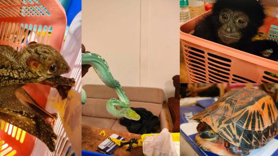 தாய்லாந்து நாட்டிலிருந்து, சென்னைக்கு வந்த பயணிகள் விமானத்தில், கடத்திக் கொண்டு வரப்பட்ட, அரிய வகை அபாயகரமான மலைப் பாம்புகள், ஆப்பிரிக்க கருங்குரங்கு, அரிய வகை அணில், ஆமைகள் உட்பட 10 உயிரினங்களை, சென்னை விமான நிலையத்தில், சுங்க அதிகாரிகள் பறிமுதல் செய்து, கடத்தல் பயணியை கைது செய்து விசாரணை மேற்கொண்டனர் .