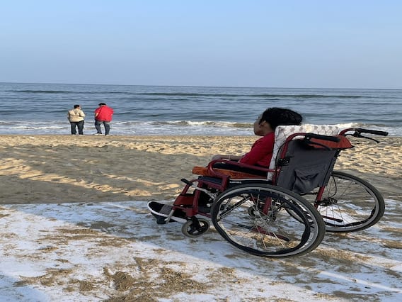 மாற்றுத்திறனாளிகளுக்கு இந்த வாய்ப்புகள் எல்லாம் இல்லை. சக்கர நாற்காலியை கடல்வரை மணலில் தள்ளிக் கொண்டு போவது இயலாத காரியம்... அவர்கள் கடற்கரை சாலையிலேயே சற்று நேரம் இளைப்பாறிவிட்டு வீடு திரும்பும் நிலைதான் நிலவுகிறது. கடல் பார்ப்பது மாற்றித்திறனாளிகளுக்கு கனவாகத்தான் இருக்கிறது. ஒரு சில பண்டிகை காலங்களில் மாற்றுத்திறனாளிகளுக்கான தற்காலிக நடைபாதையை மாநகராட்சி சார்பில் அமைக்கப்படும். பின்னர் அது எடுக்கப்பட்டுவிடும்.