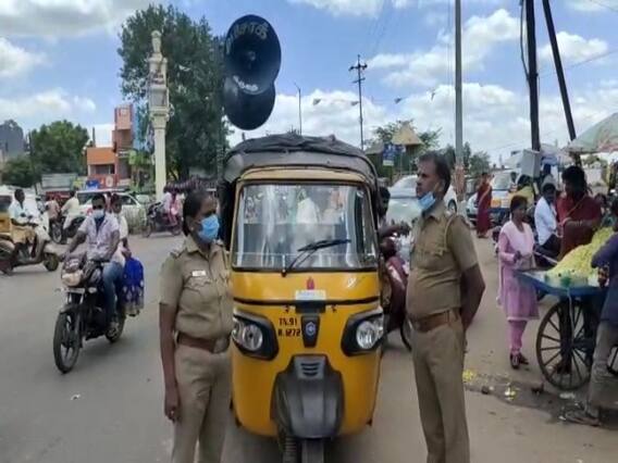 ஒலி பெருக்கியில் எச்சரிக்கும் போலீஸ்