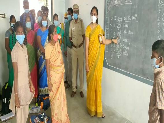 இதை தொடர்ந்து 5 ஆம் வகுப்பு, 6 ஆம் வகுப்பு,மாணவ மாணவிகளுக்கு மாவட்ட ஆட்சியர் ஆர்த்தி ஆசிரியையாக மாறி வகுப்பறை கரும்பலகையில் எழுதி இருந்த ஆங்கில இலக்கண பாடத்தை படிக்க வைத்து அதற்கான விளக்கத்தை மாணவ - மாணவிகளுக்குகூறி பாடம் நடத்தினார். மாவட்ட ஆட்சியர் அப்போது மாணவர்களிடம் தொடர்ந்து ஆங்கிலம் இலக்கணம் குறித்த கேள்விகளை எழுப்பினார். பதில் தெரியாமல் இருந்த மாணவர்களிடம், காஞ்சிபுரம் மாவட்ட ஆட்சியர் அர்த்தி எவ்வாறு அதை புரிந்துகொள்ள வேண்டும் என்பதை குறித்து விளக்கி கூறினார். இதனை தொடர்ந்து பல மாணவர்களிடம் புத்தகத்தை கொடுத்து படிக்கச் சொல்லி சோதனை செய்தார். சரியாக படிக்காத மாணவர்களை திருத்தியது, மட்டுமில்லாமல் ஆசிரியர்களிடம் மாணவர்கள் படிப்பதற்கு தொடர்ந்து பயிற்சி கொடுங்கள், மாணவர்கள் கடந்த சில மாதங்களாகவே ஆன்லைன் கிளாஸில் இருப்பதால் தொடர்ந்து பயிற்சி அளியுங்கள் என கோரிக்கை வைத்தார்.