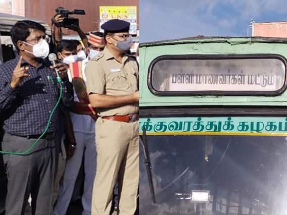 இதனை தொடர்ந்து மாணவர்களின் வசதிக்காக கூடுதல் பேருந்துகள் இயக்க நடவடிக்கை எடுக்கப்பட்டது. அந்த பேருந்துகளில் பள்ளி மாணவர்கள் மட்டும் என்று பலகை வைக்கப்பட்டு இயக்கப்பட்டன. அதில் இருக்கைகளில் மட்டும் மாணவர்கள் முக கவசம் அணிந்தபடி பயணம் செய்யவும், நின்றுகொண்டு பயணம் செய்யக்கூடாது என்றும் ஆட்சியர் அறிவுறுத்தினார். இந்த நடைமுறைகளை அனைத்து பேருந்துகளிலும் கடைபிடிக்க வேண்டும் என்று போக்குவரத்துக்கழக அதிகாரிகளுக்கும் அவர் உத்தரவிட்டார்.