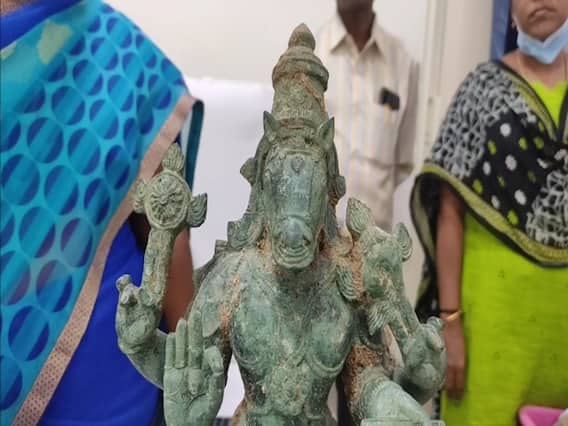 இந்நிலையில் நேற்று அதே வளதொட்டம் பகுதியை சேர்ந்த ஆறுமுகம் என்பவர் ஆற்று கரையோரம் சென்றபோது கரையோரம், சாமி சிலை ஒன்று கிடப்பதை கண்டு அதை சுத்தம் செய்து வெளியே எடுத்தார். சிலையும் முழுவதும் சுத்தம் செய்யப்பட்டபின், ஆற்றில் கிடைத்த சிலை உலோகத்திலான ஹயக்ரீவர் என அழைக்கப்படும், கல்வி கடவுளின் சிலை என அறிந்து கிராம நிர்வாக அலுவலர் அப்தல்பஷீத்திடம் தெரிவித்துள்ளார்.