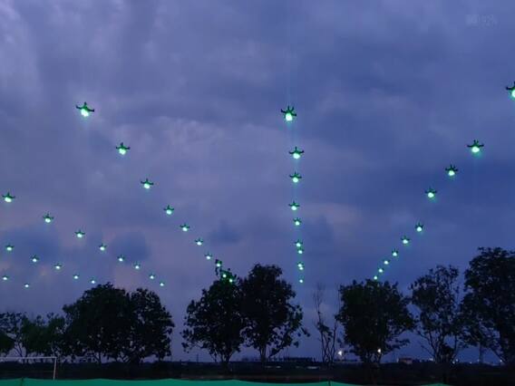 அவ்வாறு பறந்த டிரோன்கள் வெறும் வெளிச்சம் மட்டுமே கொடுக்கும் என்று எதிர்பார்த்த நிலையில் , அப்போதுதான் வானில் வர்ணஜாலத்தை காட்ட ஆரம்பித்தது குறிப்பாக 200 டிரோன்களை வைத்து, வித விதமாக வானில் வர்ணஜாலம் காட்ட ஆரம்பித்தனர். குறிப்பாக 200 டிரோன்களை வைத்து அப்துல் கலாம் உருவம், நடிகர் ரஜினிகாந்த், முன்னாள் இந்திய கிரிக்கெட் கேப்டன் தோனி ஆகியோரது உருவங்களை தத்ரூபமாக வடிவமைத்தனர். மேலும் ஹாய் என தமிழில் எழுதப்பட்ட எழுத்தும் தெரிந்தது.