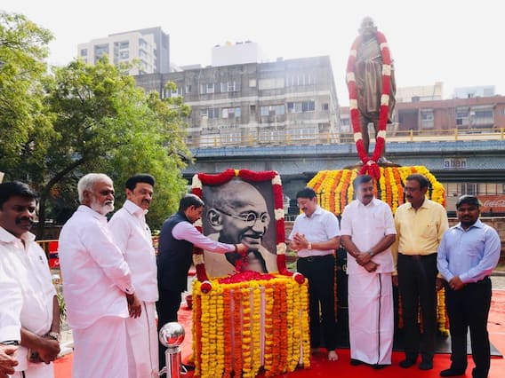 மகாத்மா காந்தியின் 76-வது நினைவு தினத்தையொட்டி, தமிழ்நாடு ஆளுநர் என்.ஆர். ரவி, முதலமைச்சர் மு.க.ஸ்டாலின் அவரது சிலைக்கு மலர்தூவி மரியாதை செலுத்தினர்.