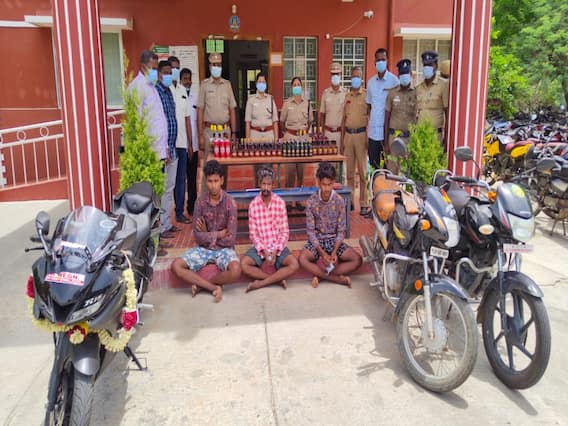 இந்நிலையில் தான் , இந்த மூவர் கும்பல் வெள்ளிக்கிழமை அன்று , 2 லட்ச ருபாய் மதிப்பிலான சொகுசு பைக் ஒன்றை இன்ஸ்டால்மெண்ட் ஏதும் இல்லாமல் , முழு பணத்தை கட்டி வாங்கியுள்ளதை பற்றி கேள்விப்பட்ட போலீசார், மணிகண்டனை முதலில் கையும் களவுமாக பிடித்து அவர் கொடுத்த தகவல் மூலம் மீதமுள்ள இருவரையும் கைது செய்துள்ளனர். இதனையடுத்து மூவரையும் கைது செய்த போலீசார் அவர்கள் பயன்படுத்திய புதிய சொகுசு இருசக்கர வாகனம் உற்பட மூன்று இருசக்கர வாகனங்களை பறிமுதல் செய்தனர் மேலும் அவர்களிடம் இருந்து ஒரு லட்சம் மதிப்பிலான உயர்ரக மதுபான பாட்டில்கள் பறிமுதல் செய்யப்பட்டது. இவர்கள் மூவர் மீதும் ரத்தினகிரி காவல் நிலையத்தில் வழக்கு பதிவு செய்யப்பட்டு , தீவிர விசாரணை நடந்துவருகிறது .