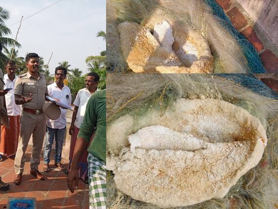 இதை அறிந்த மீனவர்கள் உடனடியாக கரைக்கு வந்து மீன்வளத்துறை காவல்துறை அச்சிறுப்பாக்கம் வனத்துறை அதிகாரிகளுக்கு தகவல் அளித்தனர். சம்பவ இடத்திற்கு வந்த வனத்துறையினரிடம் 35.6 கிலோ ஆம்பர் கிரிசை மீனவர்கள் ஒப்படைத்தனர். இன்று மீன்பிடிப்பதற்காக கடலுக்குள் சென்ற அதே பகுதியைச் சார்ந்த சேகர் 40; வலையிலும் 3 கிலோ எடையுடைய ஆம்பர் கிரீஸ் சிக்கியது. அச்சரப்பாக்கம் வனத்துறை அதிகாரிகளிடம் ஒப்படைக்கப்பட்டது.