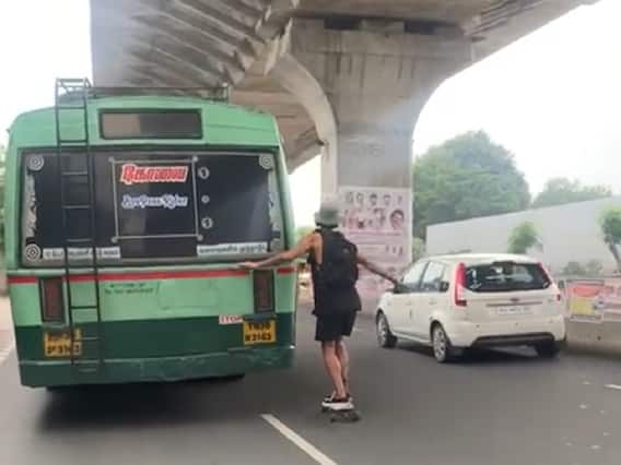கோவை விமான நிலையத்தில் இருந்து அவினாசி சாலையில் பேருந்தை பிடித்தபடி காலில் சக்கரத்தை மாட்டிக்கொண்டு வெளிநாட்டு சுற்றுலா பயணி ஸ்கேட்டிங் செய்த காட்சிகள் சமூக வலைதளங்களில் வைரலாகி வருகிறது.