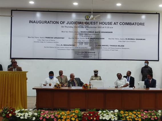 கோவை பந்தயச் சாலை பகுதியில் புதிதாக கட்டப்பட்டுள்ள நீதித்துறை விருந்தினர் மாளிகையை மெட்ராஸ் உயர் நீதிமன்ற தலைமை நீதிபதி முனீஸ்வரநாத் பந்தாரி திறந்து வைத்தார். இந்த நிகழ்ச்சியில் உயர் நீதிமன்ற நீதிபதிகள் மற்றும் தமிழக சட்டத்துறை அமைச்சர் ரகுபதி, நிதியமைச்சர் பழனிவேல் தியாகராஜன் உள்ளிட்டோர் பங்கேற்றனர். முன்னதாக பேசிய தமிழக நிதியமைச்சர் பழனிவேல் தியாகராஜன், ”பாரம்பரியமான வழக்கறிஞர் குடும்பத்தில் பிறந்த தான் சட்டம் படிக்கவில்லை என்றாலும், சட்டம் மற்றும் நீதித்துறையை தொடர்ந்து பின்பற்றி வருகிறேன். கடந்த சில ஆண்டுகளில் நீதிமன்றங்களில் நிலுவையில் உள்ள வழக்குகளின் எண்ணிக்கை இரு மடங்காக அதிகரித்துள்ளது. அதற்கு நிகராக நீதிபதிகளின் எண்ணிக்கை அதிகரிக்கவில்லை.