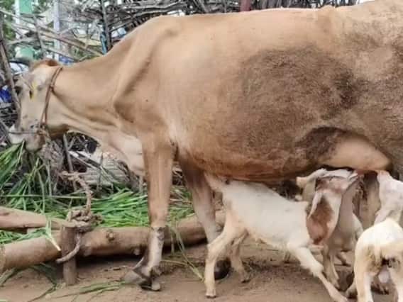 உயிர்கள் அனைத்திற்கும் தாய்ப்பால் என்பது முக்கியமானதாக உள்ளது. அது பசியை போக்குவதுடன் உடல் நலம் பேணவும் உதவியாக இருந்து வருகிறது. இது மனிதர்களுக்கு மட்டுமின்றி, விலங்குகளுக்கும் பொருந்தும். அதேசமயம் தாய்ப்பால் கிடைக்காத குழந்தைகள், கூட்டுக் குடும்பங்களில் உள்ள மற்ற தாய்மார்களிடம் பால் குடித்து வளரும் சம்பவங்களை பார்த்திருப்போம். அதேபோல தாய் ஆட்டிடம் பால் சுரக்காத நிலையில், ஆட்டுக்குட்டிகள் பசு மாட்டின் மடியில் பால் குடித்து பசியாறும் ஒரு ஆச்சரிய சம்பவம் கோவையில் நடந்து வருகிறது.